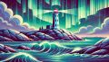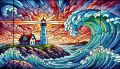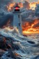 Majestic Lighthouse Amidst Stormy Seas at Sunset