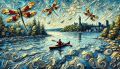Enchanting Birdwatchers at Sandy Lake Park: A Neo-Expressionist Vision