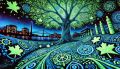 "Moonlit Metropolis: Artistic Fusion of Nature and Urban Life"