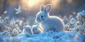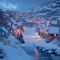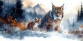 Enchanting Winter Wilderness Scene with Deer and Snow-Covered Mountains