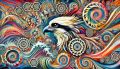 Enigmatic Red Fox Amidst Whirling Colors of a Dreamy Forest