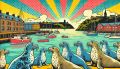Vibrant Pop Art Depiction of Halifax Common with LED Animations