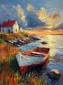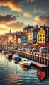 Enigmatic Sunset Over Coastal Town: A Canvas Art Masterpiece