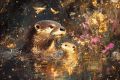 Enchanted Riverbank Scene with Otters in a Mystical Forest