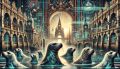 Seagulls Dance Over Crystal Crescent Waves in Baroque Splendor
