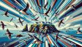 Surreal Coastal Dreamscape: Terns Soar Above Halifax's Mystic Shores