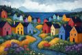 Colorful Houses Along Serpentine Path by Seaside in Artistic Depiction