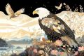 Majestic Bald Eagles Soaring in a Stylized Art Deco Sky