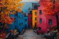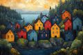 Colorful Coastal Hamlet at Dusk: A Vibrant Canvas Print