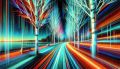 Energetic Dance of Blueberries and Blooms in Futuristic Art