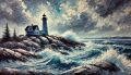 Serene Rainstorm at Peggy's Cove: A Stylized Artistic Representation