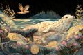 Tender Moments Between Mother Seal and Pup in Golden Florals