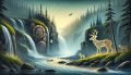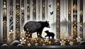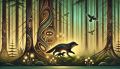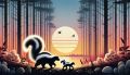 Enchanted Forest Journey: A Striped Skunk and its Baby Amidst Totemic Art