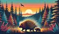 Dawn in Nova Scotia: Porcupine Family Amidst Sun-Kissed Pines