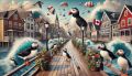 Pop Art Meets Urban Jungle: Canada Geese Over Halifax's Cityscape