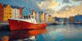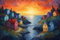 Vibrant Coastal Village at Sunset in Halifax, a Canvas Art Masterpiece