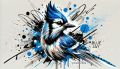 Elegant Blue Jay Amidst Art Nouveau Flora Under Gradient Sunset