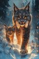 Majestic Lynx and Cub Traversing a Snowy Twilight Forest