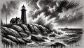 Dramatic Charcoal Sketch of a Lighthouse in Peggy's Cove Storm