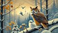 Artistic Interpretation of Halifax Landscape with Vibrant Wildlife Elements