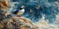 Atlantic Puffin on Rocky Outcrop Overlooking Crashing Waves