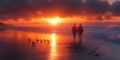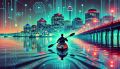 Tranquil Evening: Otters Swimming in Twilight Illuminated Waters