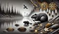 "Ethereal Bonds: A Beaver and Its Young Amidst Canadian Wilderness"