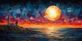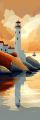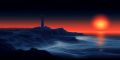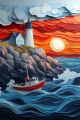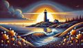 Vivid Sunset Over Halifax: A Stylized Lighthouse and Ocean Waves