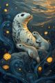 Enchanting Depiction of Seals and Birds in a Stylized Nature Scene