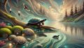 Enchanted Journey of a Wood Turtle and its Hatchling