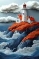 Storm-Tossed Waves and Lighthouse: A Cubist Perspective from Peggy's Cove