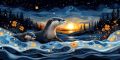 Enigmatic Evening: Vivid Whirls Over Halifax's Skyline on Canvas