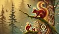Enchanting Encounter: Squirrels in a Golden Forest at Dawn