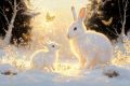 Enchanted Winter Wonderland: Snowy Rabbits and Golden Butterflies