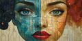 Vivid Dual-Toned Mosaic Portrait on Canvas Captures Emotion and Artistry