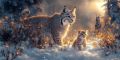 Winter Whisper: A Majestic Lynx and Her Cub in Snowy Wilderness