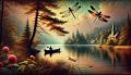 "Folk Art Fusion: Fishing at Morris Lake, Halifax with Lush Floral Motifs"