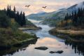 Majestic Dawn: Ravens Glide over Misty Halifax Lake