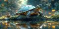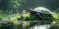 Serene Wildlife Haven: Turtle and Bird in Natural Morning Light
