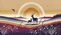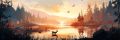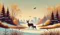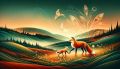 Sunset Hues Over Mystical Landscape: Deer and Fawn Stylized Art