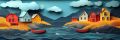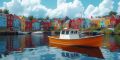 Colorful Coastal Village and Sailing Boats in Whimsical Art Style