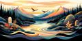 Panoramic View of a Stylized Sunrise Over Canadian Wilderness