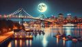 Majestic Moonrise over Tranquil Halifax Lake with Geese in Flight