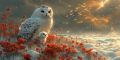 Snowy Owls Amidst a Fiery Sunset and Icy Landscape