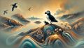 Otters at Dusk: A Serene Sunset Moment in a Dreamy Landscape