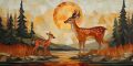 Warm Golden Hues Meet Majestic Wildlife in Enchanting Forest Art