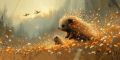 Enchanting Nova Scotia Forest Scene with Porcupine and Cultural Motifs