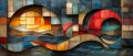 Colorful Abstract Coastal Landscape Canvas Art from Halifax