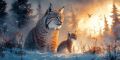 Dawn Breaks in Snowy Wilderness with Majestic Bobcats Observing