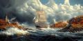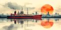 Majestic Red Ship at Dawn: Beauty and Power on the Atlantic
